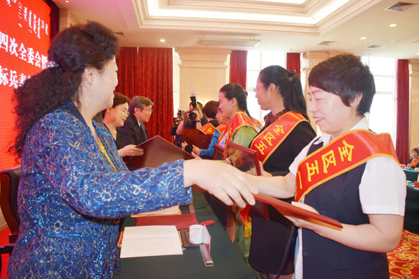 表彰会上,吴团英主席作重要讲话,他充分肯定了全区各级工会女职工组织在维护女职工权益、促进女职工全面发展等方面取得的成绩,并对获奖的集体和个人表示祝贺。他希望全区各级工会女职工组织要团结引领女职工在决胜全面建成小康社会的生动实践中展示巾帼才智,全面提升女职工思想政治素质、职业道和职业技能素质,着力建设知识型、技能型、创新型女职工队伍,为建设亮丽内蒙古、共圆伟大中国梦作出新的贡献。