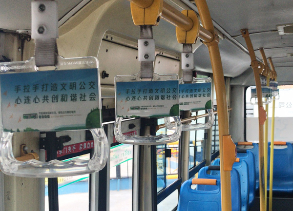 近日,天安公交集团营运管理部为中心城区所有公交车扶手穿上了“新衣”,一句句温馨的提示语、一系列融入地域特色的宣传标语格外引人注目,它不仅扮靓了车厢氛围,更加方便乘客抓扶,保障乘车安全。