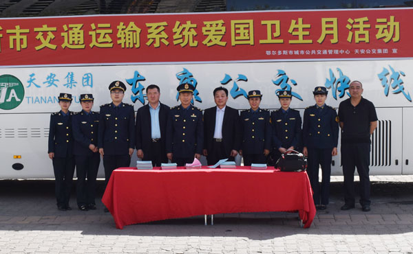 4月26日,天安公交集 团依照《鄂尔多斯市交通运输系统爱国卫生月活动实施 方案》的要求,由集团工会牵头,在东胜区欢乐谷广场开 展了“新时代、新健康、新促进”为主题的爱国卫生月宣 传活动。鄂市公交管理中心有关领导及天安公交集团 安全管理部、各公交营运公司近百人参加了活动。
