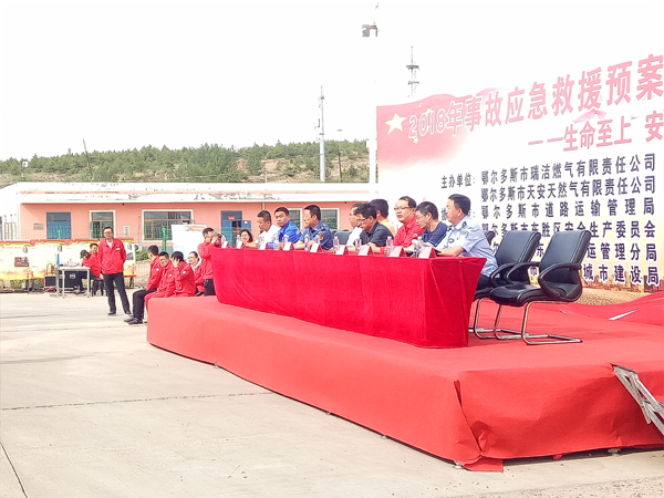 6月15日,天安天然气公司与西部瑞洁燃气公司联合举办的事故应急救援预案消防演练活动在东胜区添漫梁举行,市区两级主管单位指导了本次消防演练活动。