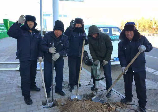 在寥寥无人的街头,几名身穿公交棉大衣的人在街道边操着四五十斤重的电锤,在冻得硬邦邦的混凝土上敲击着,火星四溅,尘土飞扬,都打了半个多小时了,任没有多大进展。他们耳朵冻得通红,额头却挂着冰珠子。