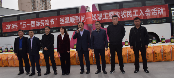 4月29日上午,东胜区总工会与天安公交集团工会共同组织的2019年“五一国际劳动节”送温暖慰问一线职工暨农牧民工入会活动在天安油气公司举行。东胜区总工会副主席胡建梅、李保林,天安公交集团副总裁刘恭明、王彦斌等领导参加活动。