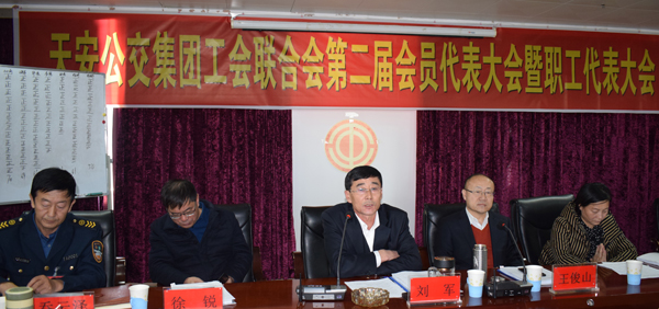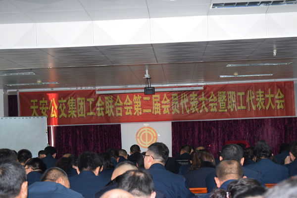 12月6日上午,天安公交集团召开工会联合会第二届会员代表大会暨职工代表大会。会议由集团党委副书记、集团副总裁刘恭明主持,集团董事长王俊山、副董事长武桂英、总裁刘军出席,集团主要领导、职工代表近100人参会。