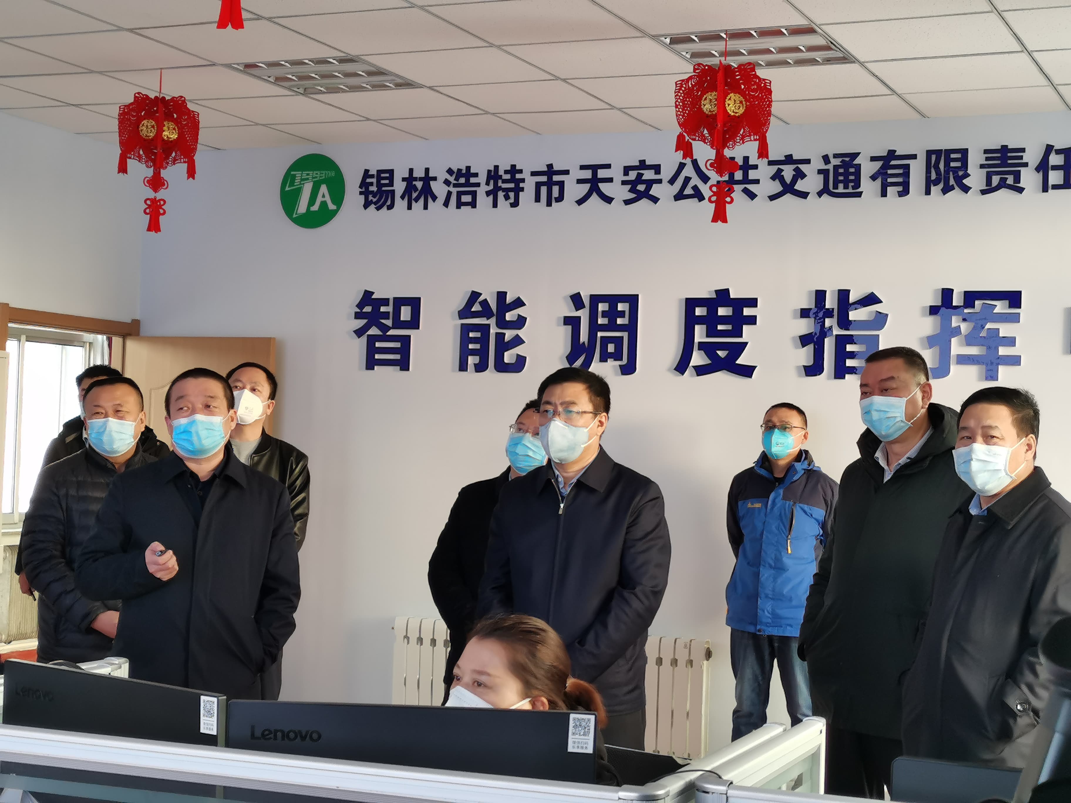 2月27日下午,锡林浩特市市委书记张锦明、市委秘书长项存明、统战部部长赵国柱、市场管理局局长吕峰、市交通局局长陈涛等一行莅临锡市天安公交公司调研指导疫情防控及复工复产工作。 在智能调度指挥中心,张书记一行详细询问了疫情防控的主要措施,现场查看了疫情防控方案、复工后防控物资计划表以及工作执行等具体情况,听取了锡市天安公交公司总经理贺国瑞同志关于新型冠状病毒感染肺炎防控工作的开展情况和目前存在的困难和问题。张锦明书记对锡市天安公交公司疫情期间积极参与疫情防控工作给予充分肯定,并表示政府会帮助公交公司协调各部门,解决防控物质问题。同时张书记指出:公交作为服务广大市民出行的公益企业,和老百姓的生产生活息息相关,一定要谋划好公交复工复产工作,认真落实市委市政府关于疫情防控和复工复产两不误的工作部署,强化安全监管,加强车辆技术管理、人员管理、动态监控管理等,为群众出行、企业复工复产提供有力的运输服务保障。